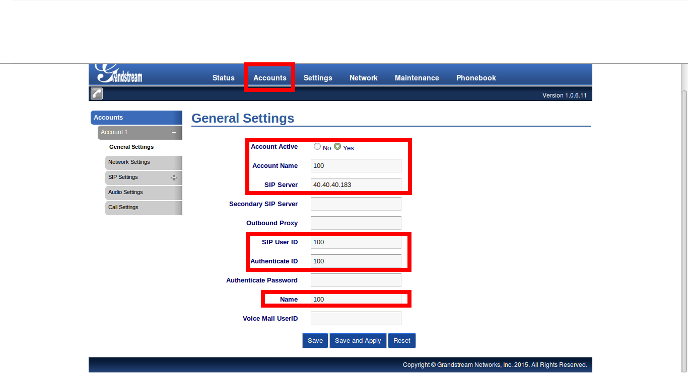 SIP Server: 40.40.40.183 – aponte para o endereço IP do segundo GXP 1165